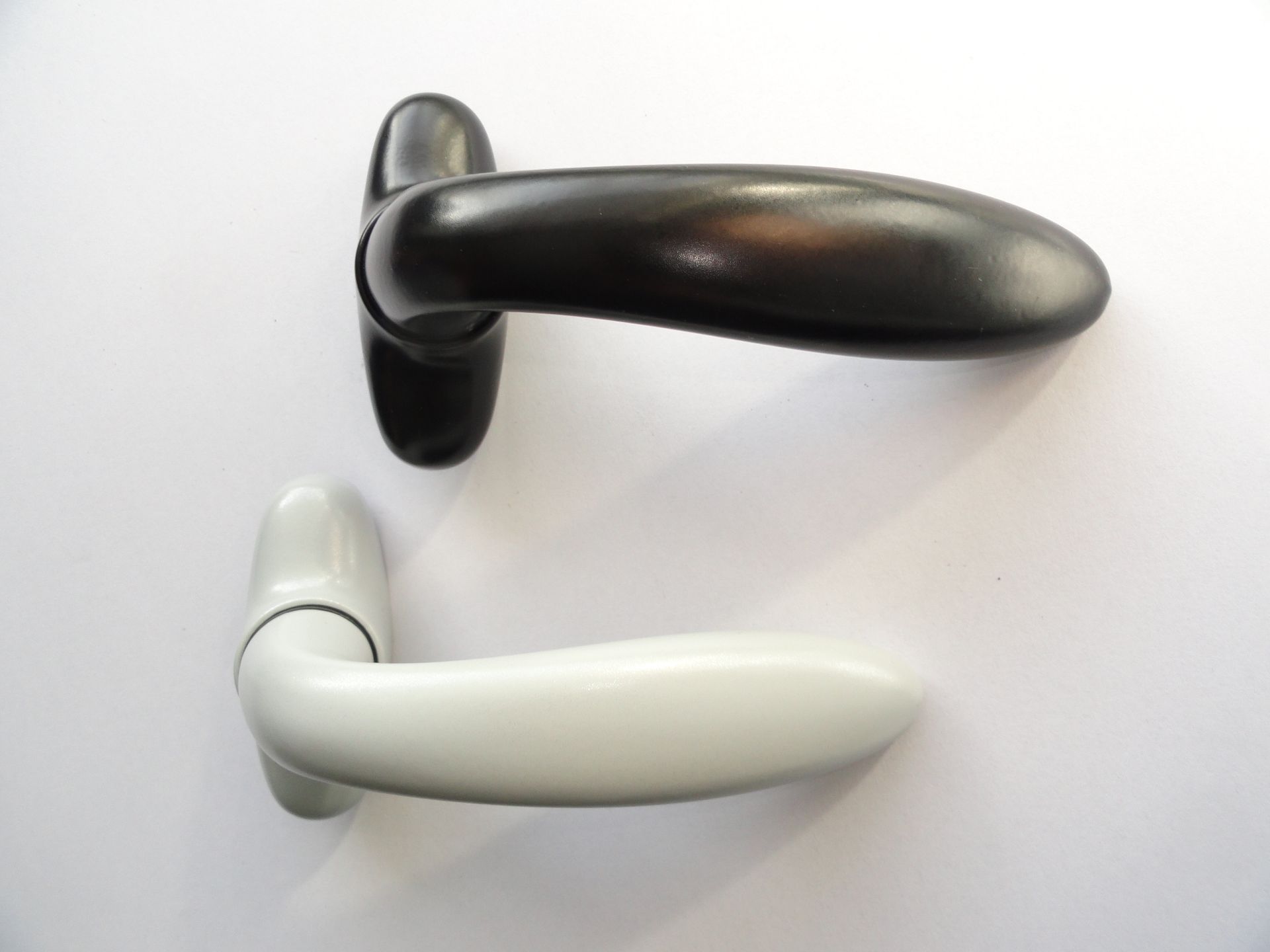 Visoko kvalitetna kvaka za metalna i pvc vrata. Napravljena od legure aluminijuma i cinka. Završna obrada plastifikacija u dve boje: crna i svelo siva.
